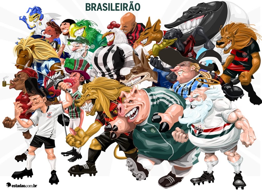 Mascotes do Campeonato Brasileiro em caricaturas realistas