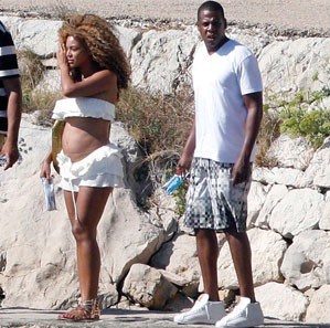 Foto Jay-Z e Beyoncé - Pegando na barriga grávida dela