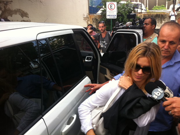 Foto - Carolina Dieckmann na delegacia fazendo charme com o cabelo