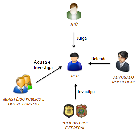 Como visto acima, no cenário atual, o Ministério Público tem o poder não apenas de acusar/denunciar o réu, mas também de atuar na investigação do mesmo, conforme ilustrado abaixo: