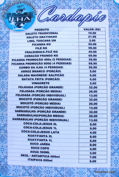 Restaurante Picanharia e Galeteria da Ilha Endereço: Av. dos Holandeses Nº180 - Olho D'água (ao lado do condomíno Faraós) Churrasco DELIVERY Telefone - Whatsapp: (98) 3304-1050 (98) 9 8827-8689 (98) 9 8290-8918 Self-Service: R$ 29,90 Kg Quentinha - R$ 9,90 Mocotó - R$ 16,90 Galeto inteiro - R$ 19,90 Picanha (p/ 2 pessoas) - R$ 39,90 Cardápio: