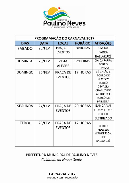 PROGRAMACAO - Carnaval Paulino Neves-MA 2017