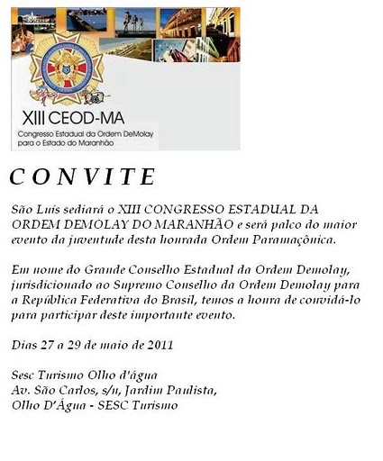 XIII CEOD-MA - Congresso Estadual da Ordem Demolay do Maranhão 2011 O Maior Evento da Juventude da Ordem Paramaçônica