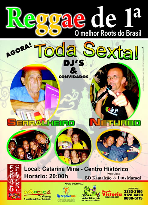 Reggae de Primeira! O Melhor do Reggae Roots Agora Toda Sexta Local: Catarina Mina - Centro Histórico Horário: 20 horas Produção: BD Kamaleao & Luís Maracá DJ's & Convidados: Serralheiro Neturbo Onde Tem Festa, Tem Kamaleao!